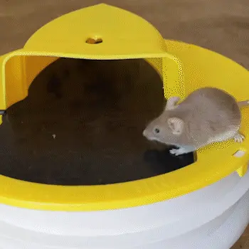 Umístěte past na kbelík, hlodavec vyleze na připojený žebřík, poté pastí kvůli její hmotnosti zatřese a spadne do kbelíku.
